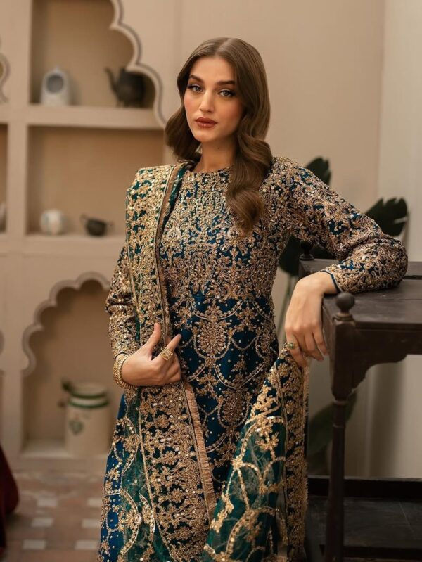 Elegant Embroidered Sequence Designer Anarkali Suit (Three Piece Set)
