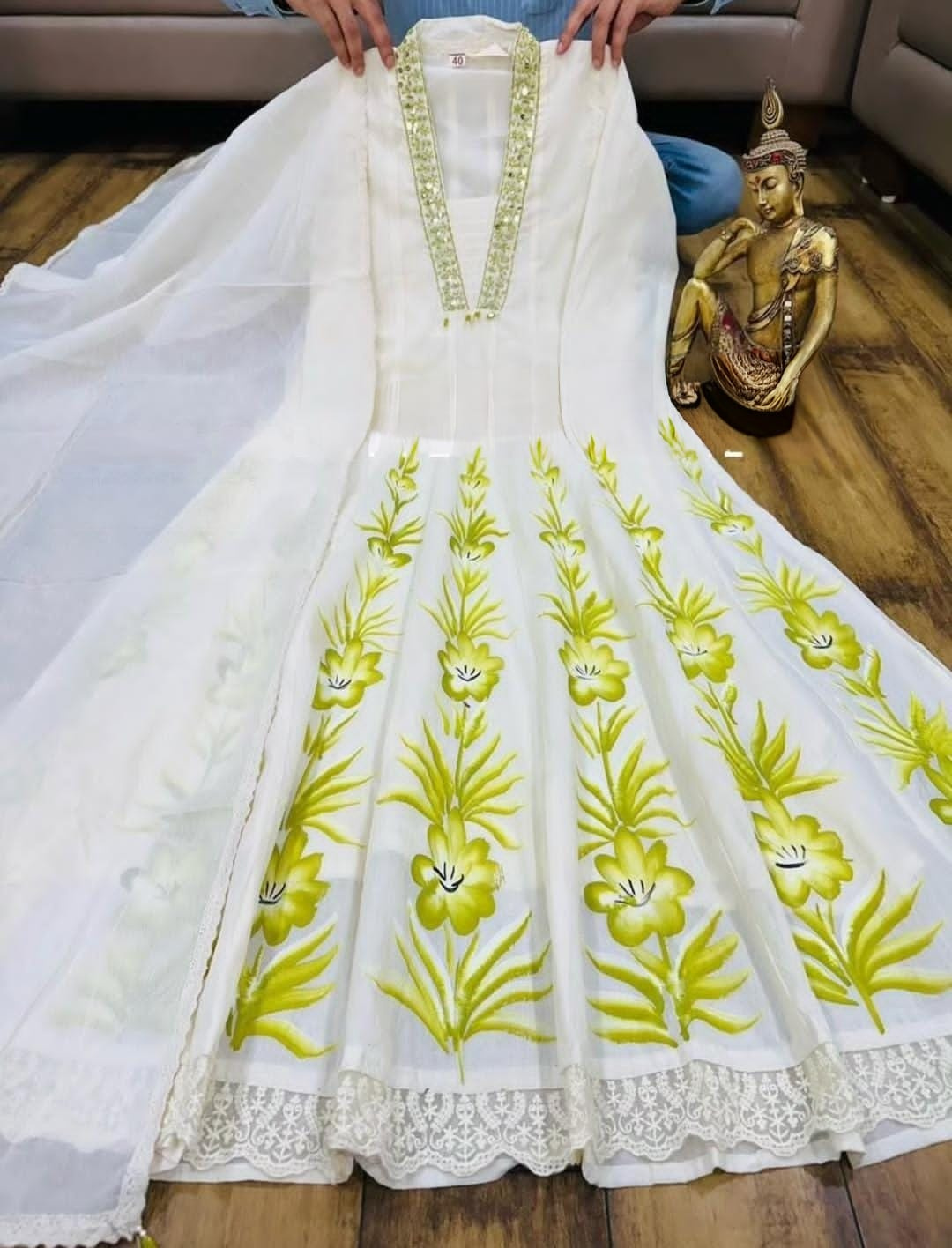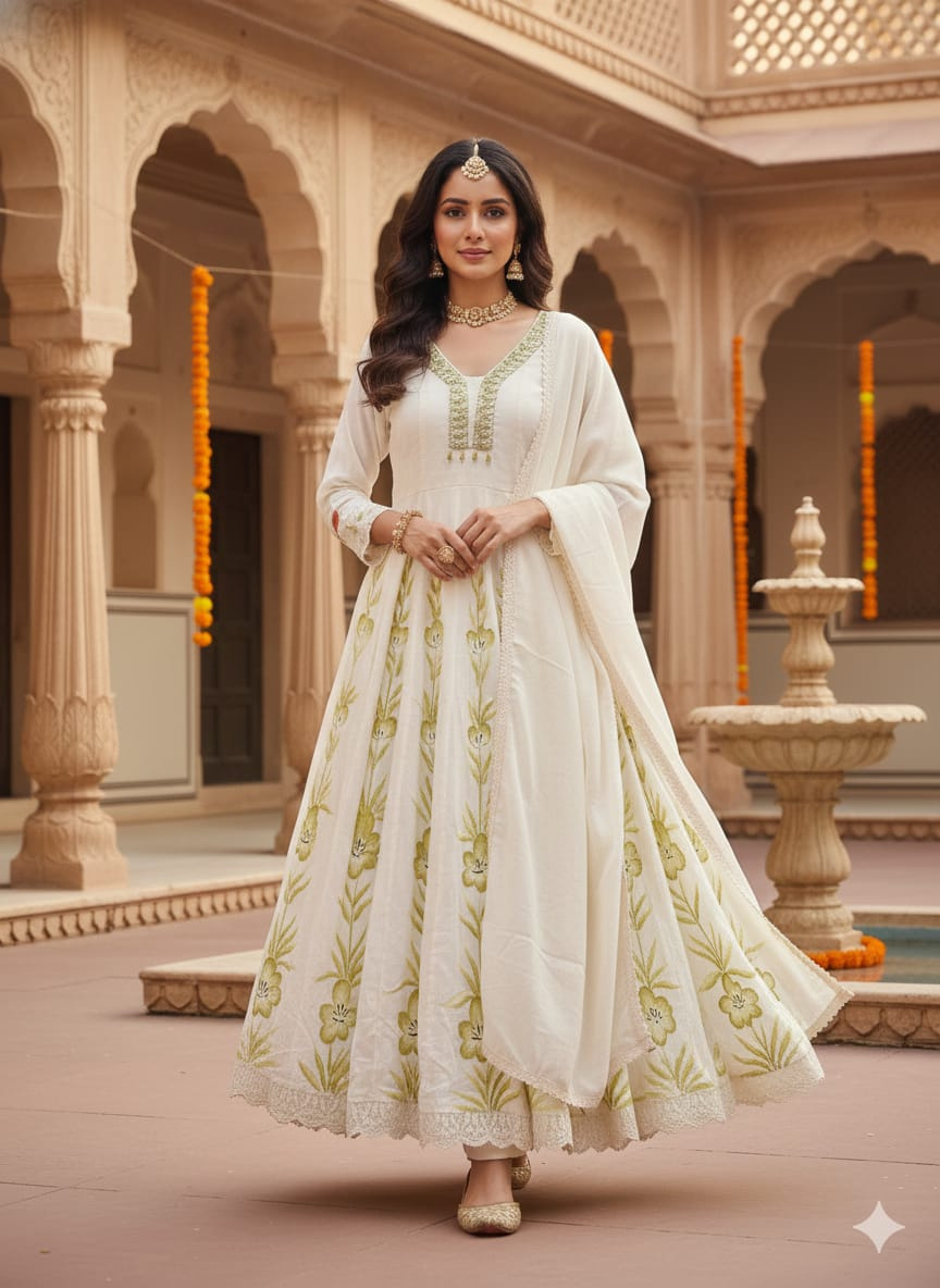 Experience elegance with comfort in The White Freshness – a beautifully crafted Mal Cotton Anarkali Suit Set designed for everyday grace and special occasions. Made from lightweight and breathable Mal Cotton, this outfit keeps you comfortable throughout the day while maintaining a chic ethnic look.