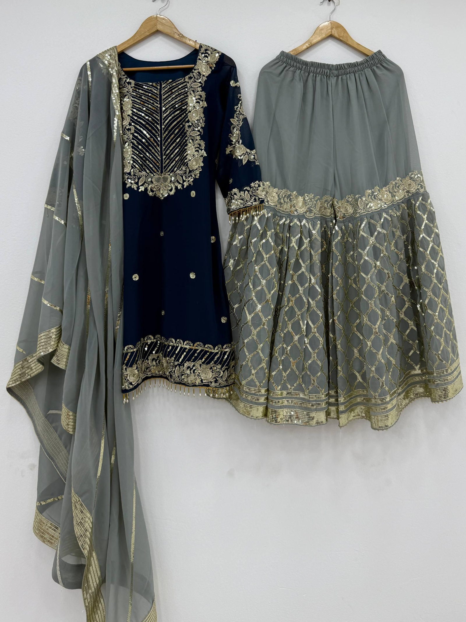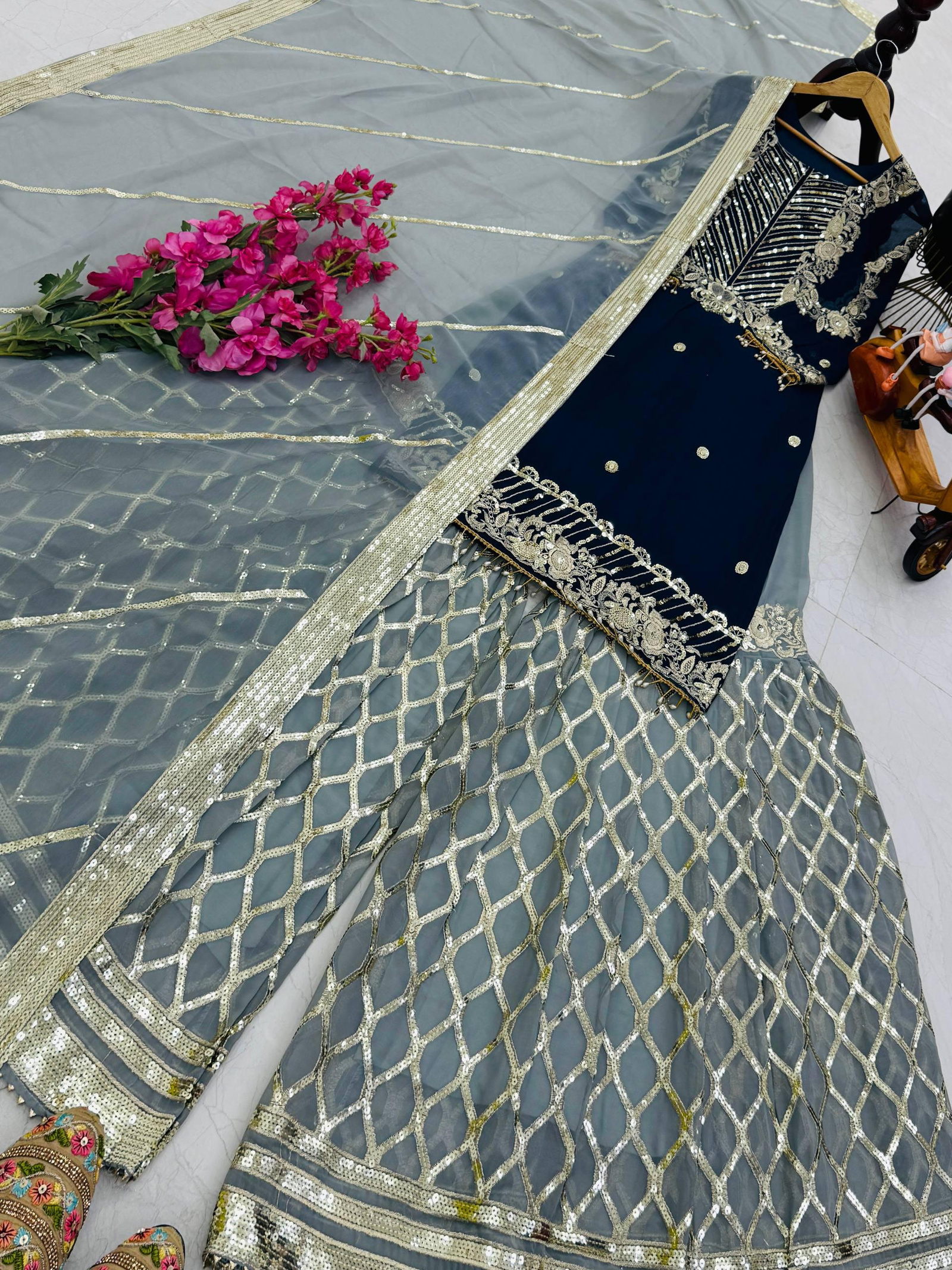 - Palazzo Febric :- Fox Georgette Hevy Embroidery Siqunce Work