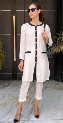 Introducing our elegant and stylish White Kurta Set, accentuated with a sophisticated black stripe and a buttoned placket. This classic ensemble seamlessly blends tradition with contemporary fashion, making it the perfect attire for various occasions. Accompanying the kurta is a pair with white trousers.