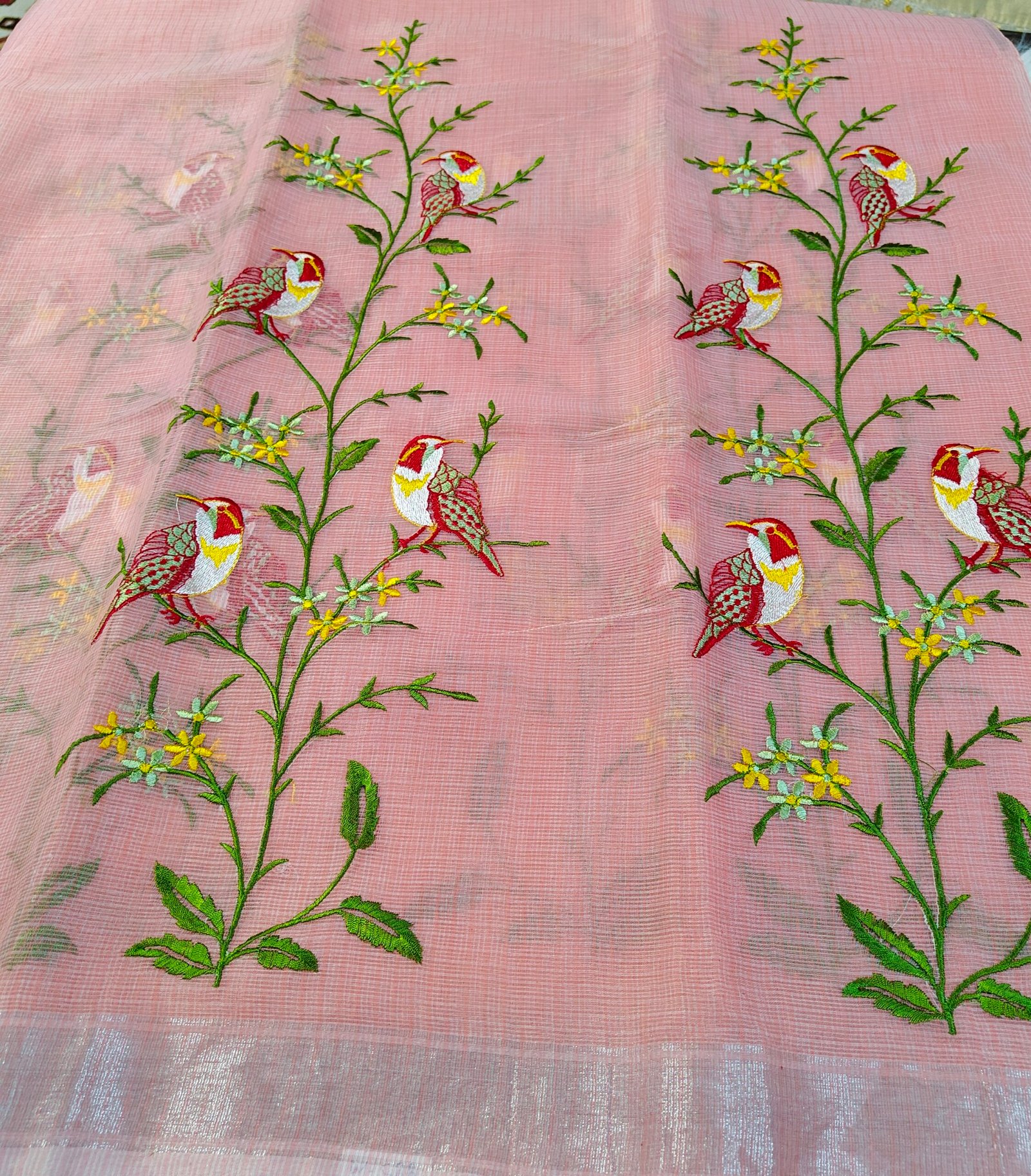 Be the first to review “Elegant Peach Kota Doriya Saree with delicate thread work”