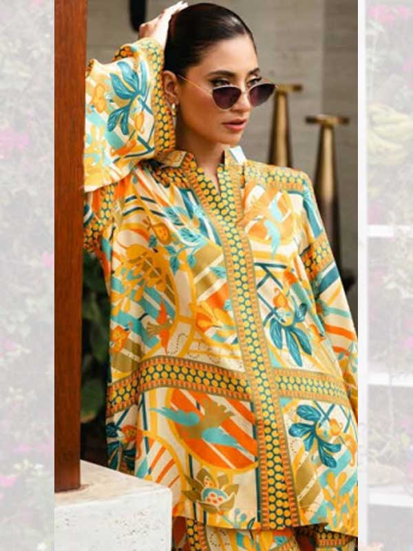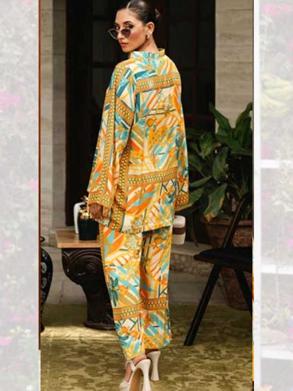 Discover the allure of contemporary design with this in-house created co-ord set featuring a distinctive floral geometric print in vibrant shades of yellow, blue, and green. Tailored from luxurious Korean BSY fabric, the set effortlessly combines floral elements with geometric patterns, creating a visually striking yet harmonious look. The top is designed with a modern cut that flatters the figure, while the coordinating bottoms provide a sleek and cohesive finish. The bright and lively nature of the outfit makes it a versatile choice for occasions where you want to make a confident, stylish statement.