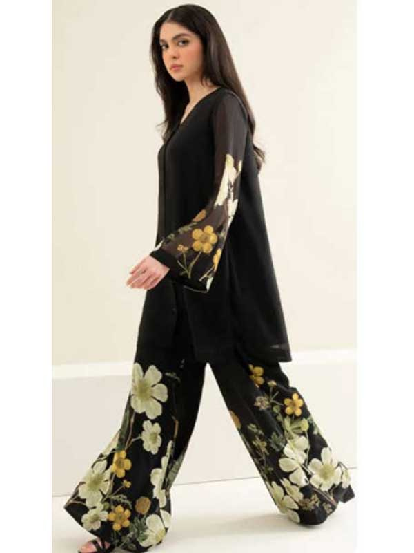 Upgrade your wardrobe with the Trendy Black Floral Co-Ord Set with Wide Leg Pants, designed for women who love stylish yet comfortable outfits. Crafted from a premium blend of Georgette and Crepe, this co-ord set offers a lightweight, breathable feel with a graceful flow.