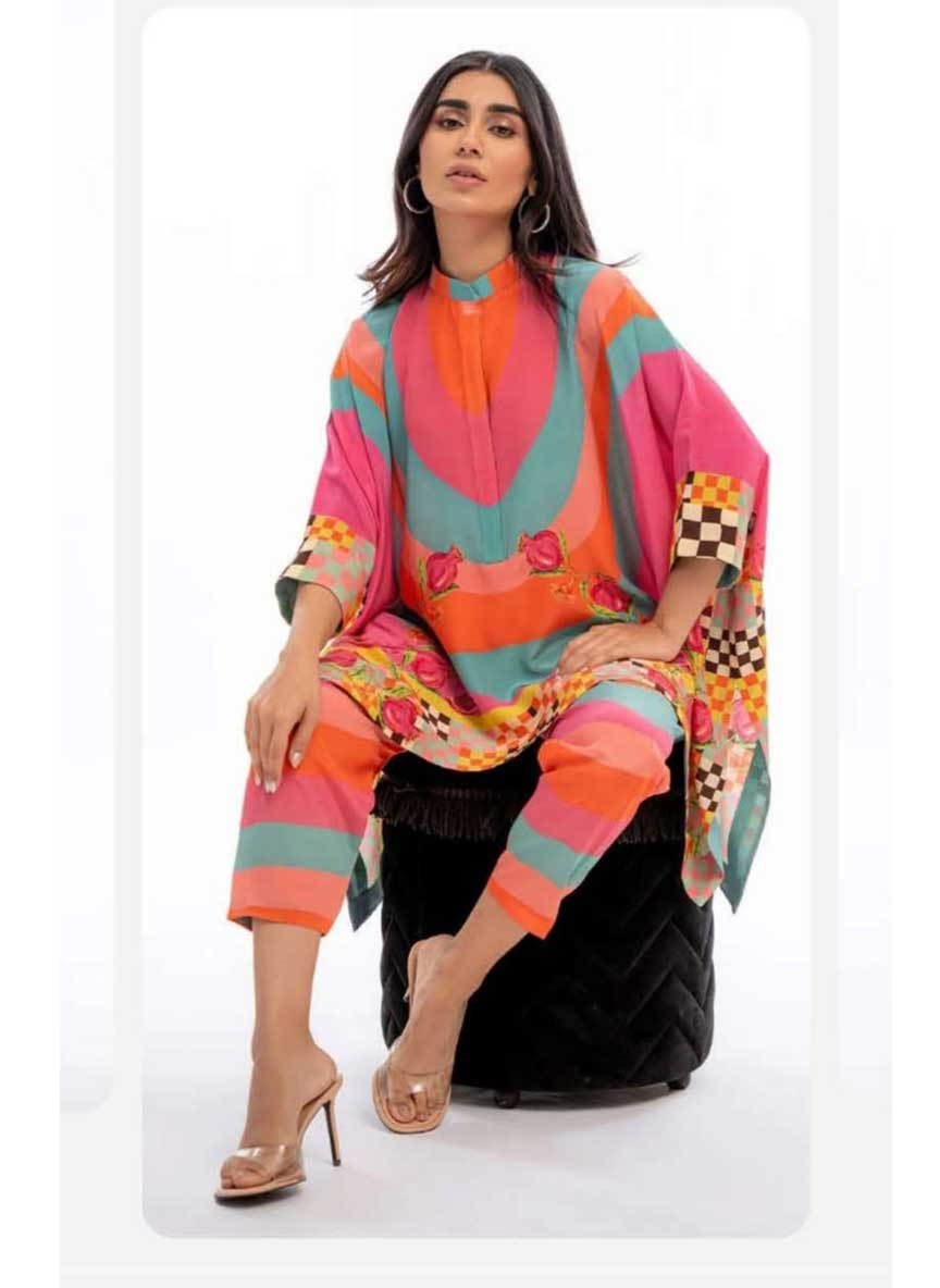 The beautiful multicolor printed kaftan features a relaxed fit and a modern silhouette, paired perfectly with a stylish and comfortable pant. Its trendy design makes it a great choice for casual outings, festive gatherings, travel, or everyday wear.