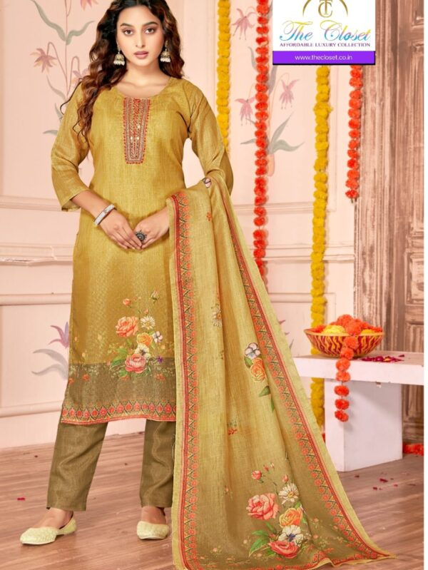 Stylish & affordable Semi-Silk Suit Set for women – elegant festive outfit with Pant & Dupatta.